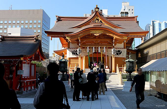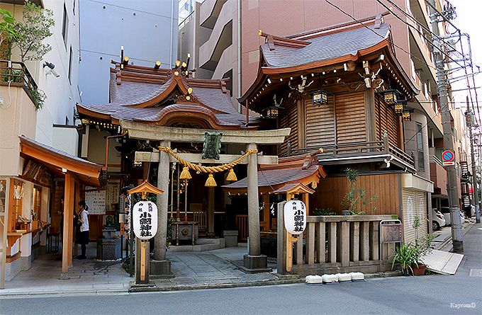 小網神社創建於1466年,供奉著福祿壽及弁財天。相傳此社為鎮壓瘟疫而建,而在戰爭時期,於此社參拜的士兵都得以生還回國,可見其「強運除厄」的效果。到訪此處,不妨以社內的「銭洗いの水」沾濕鈔票,再放入錢包(不要用掉),可加強財運。此社的社殿及神樂殿均是很有歷史價值的木造建築,現已被指定為中央區有形文化財。