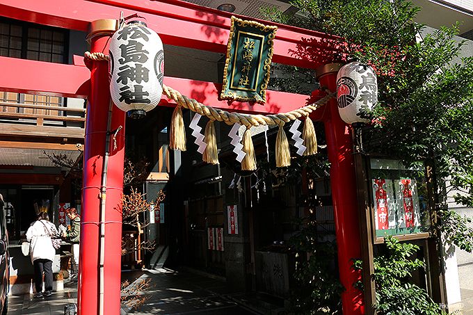 松島神社的創社時期不明,估計早於1321年之前已建成。其中一位供奉著的神明是大國主神,在七福神的信仰中,神道教的大國主神跟印度佛教的大黑天經常會合而為一(這種習俗稱為「習合」)。大國主神主管五穀豐收,商運昌盛等,在11月的「西之市」時十分熱鬧。在松島神社可嘗試求取「良夢札」,據說記下祈求之事再置於枕下,就能「發個好夢」,並將之變成現實(稱為「正夢」)。
