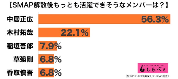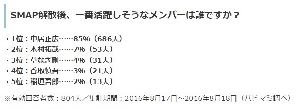 出典:SMAP解散後に一番活躍しそうなメンバーランキング…1位は誰だ?