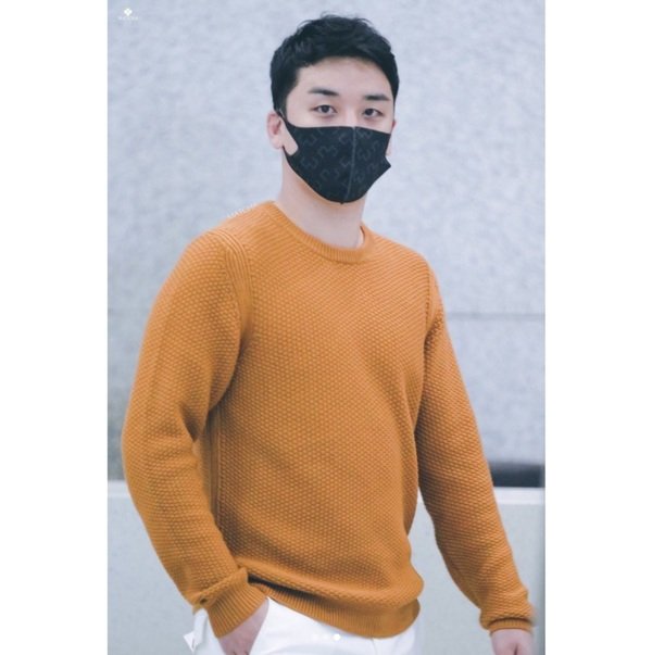 偶像天團Bigbang成員勝利,簡單的穿著配上低調印花口罩就很有型!