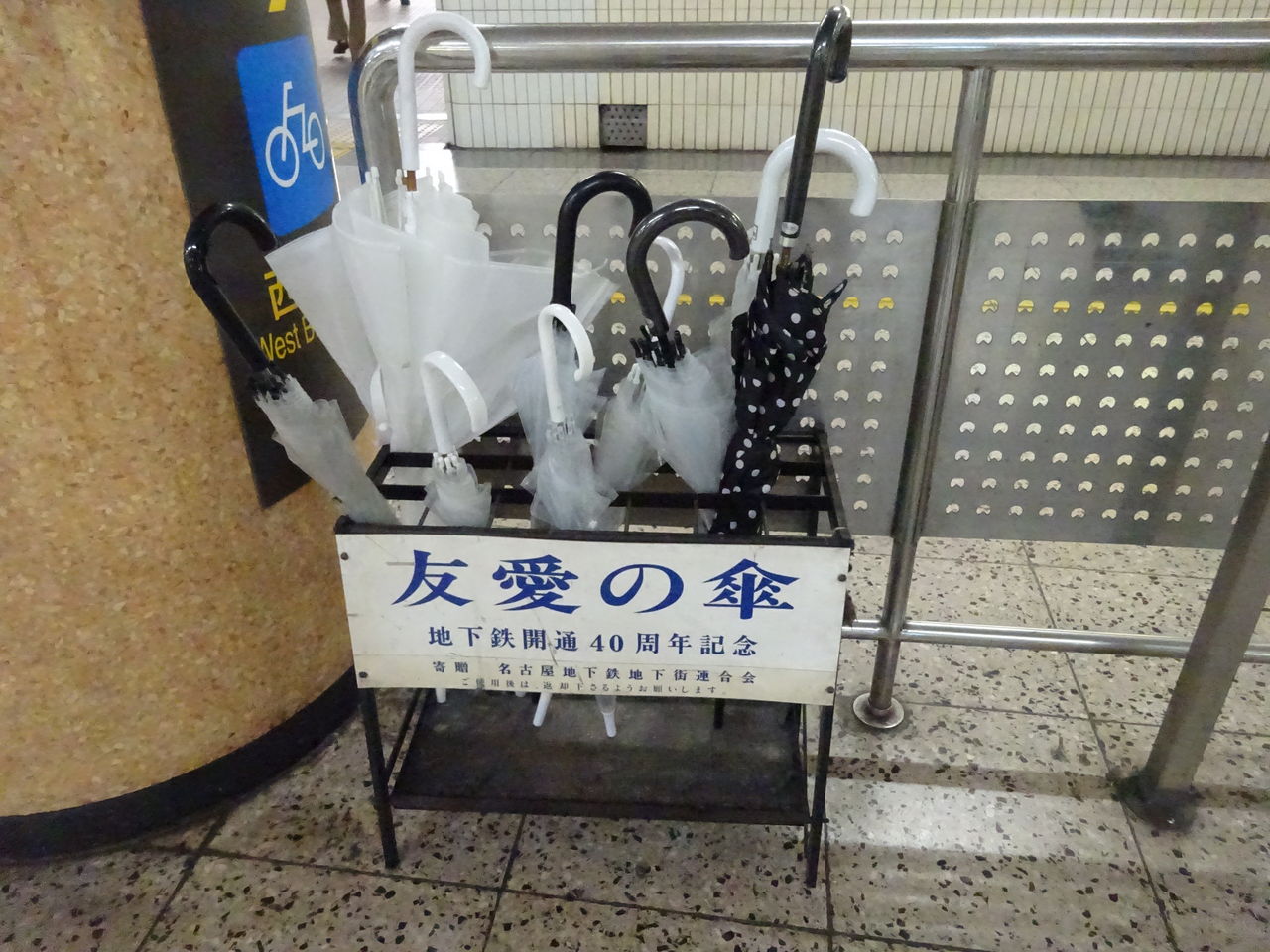 下雨天,如果沒有帶傘,可是無比的麻煩。這時候,大家都會希望「如果身邊有一把傘能拿走就好了」。正因如此,名古屋市營地鐵由50多年前開始就搞了「友愛の傘」的計劃,準備一批傘放在85個地鐵站中,讓乘客有用時便拿去用,用完交還予任何一個地鐵站。