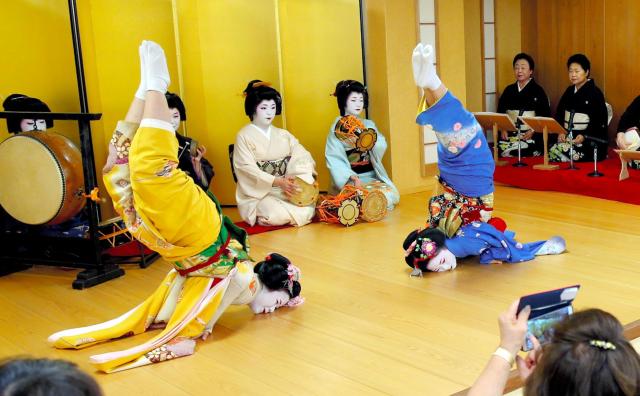 在名古屋城上作為裝飾的金鯱(しゃち),是名古屋的標誌。原來,在名古屋,有一種模仿金鯱的舞蹈,是由舞妓所創的,以臉及手支撐身體而倒立,稱為「しゃちほこの踊り」。看上去,動作難度很高。不過,只要掌握到一些技巧,即使不是練習了很久,也「其實不難」。