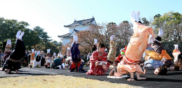 在11月12日,約40位穿上和服的女士在名古屋城的「二之丸広場」集合,一起練習這個動作。負責指導的是日本舞踊・西川流四世家元的西川千雅先生。這是宣傳名古屋傳統文化的「やっとかめ文化祭」其中一項活動,今年已是第二年舉辦。