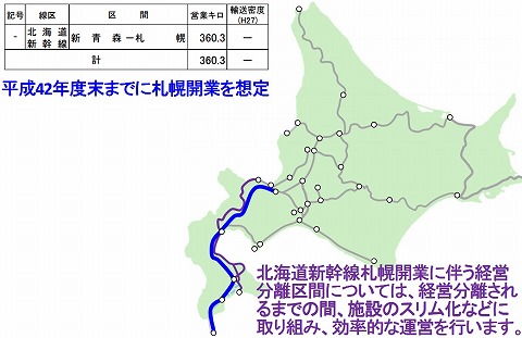 在今年初開業的北海道新幹線,其實最終會以札幌為終點,目前預定於2030年開業。到通車之時,按過往例子,JR各社都會採用「經營分離」方式,不再營運平行路段的在來線。不過目前言之營早,故此JR北海道未有就這些路線的去向作任何發表。