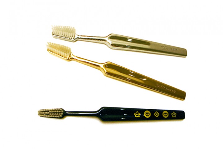 這系列的牙刷是BAPE在2009年時與瑞士口腔衛生品牌 TePe 合作所推出的,不要以為這只是印有BABY MILO圖案的牙刷,金色的兩款是由24K金所製成,真是名副其實的「牙齒當金洗」!