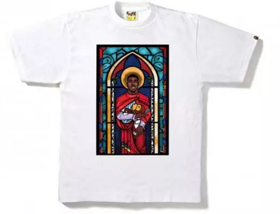 雖然BAPE 常與明星合作出T恤,但數到設計最特別的可以說是跟美國rapper A$AP Ferg 合作的這件作品。圖案以教堂作背景,A$AP Ferg更裝成耶穌,抱著在垂死邊緣的BABY MILO,認真搞怪。