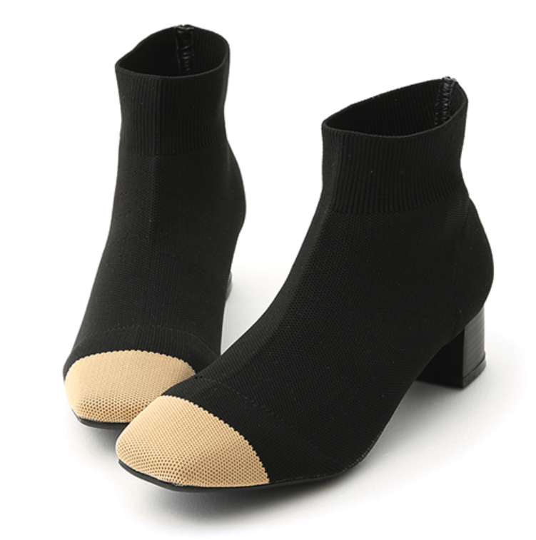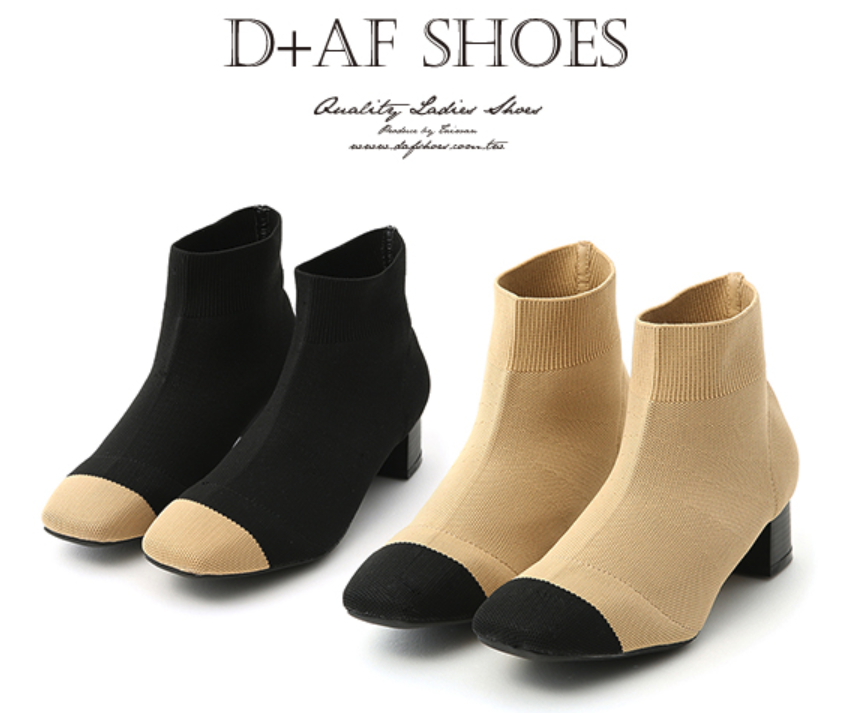 D+AF襪靴推薦:名品氣質.小香風方頭彈力針織襪靴