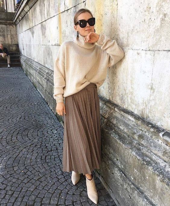 運用不同顏色或是不同花紋的奶茶色單品做搭配。毛衣、寬褲或裙子,再搭上同色系的踝靴,原本基本款的單品馬上變成帶有層次感的完美氣質穿搭了!
