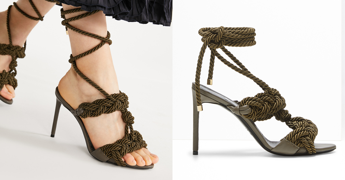 Max Mara這雙纏繞式的繫帶露趾高跟鞋光從外觀看起來就覺得散發一股慵懶的性感氛圍,可以綁在腳踝,也可以往上綁到小腿處可說是仙女必備款喔!