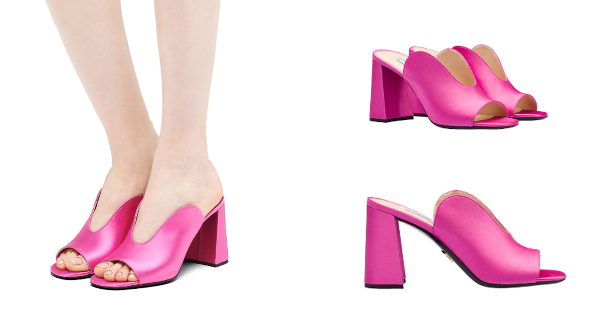 前包、後空,宛如拖鞋般的設計,於時尚界刮起一股流行的「穆勒鞋」(Mules),穿起來不顯拘謹,卻又能在慵懶之中展現隨興不羈的時髦態度!但在Prada的詮釋下,這一亮桃粉紅的露趾穆勒鞋粗跟鞋,感覺更加輕挑有活力〜