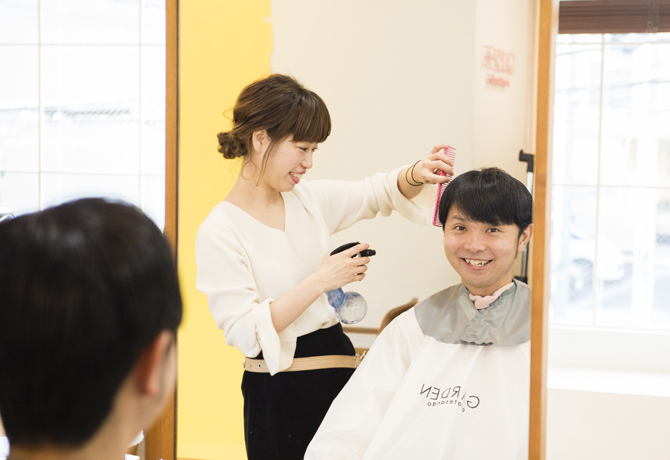 勇士第一站來到表參道的時髦髮型屋,將自己的命運交託予美容師豐島小姐的雙手。