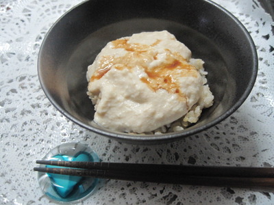 這個做法是把豆腐打成液態,然後淋上飯上,再加些豉油或燒肉汁