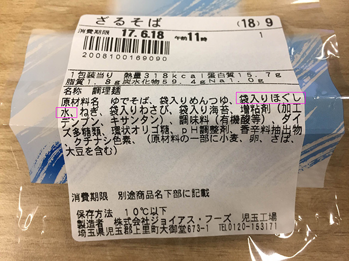 在蕎麥麵包裝盒上的成份,也寫上了「袋入りほぐし水」……究竟這是甚麼?