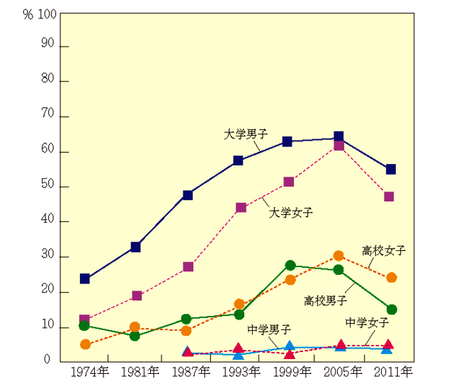 很多成年人以為不提及性,青少年就會不接觸性。據日本性教育協會於2011年的調查,2578名高中受訪者裡,擁有性經驗的男女分別為15.0%和23.6%。