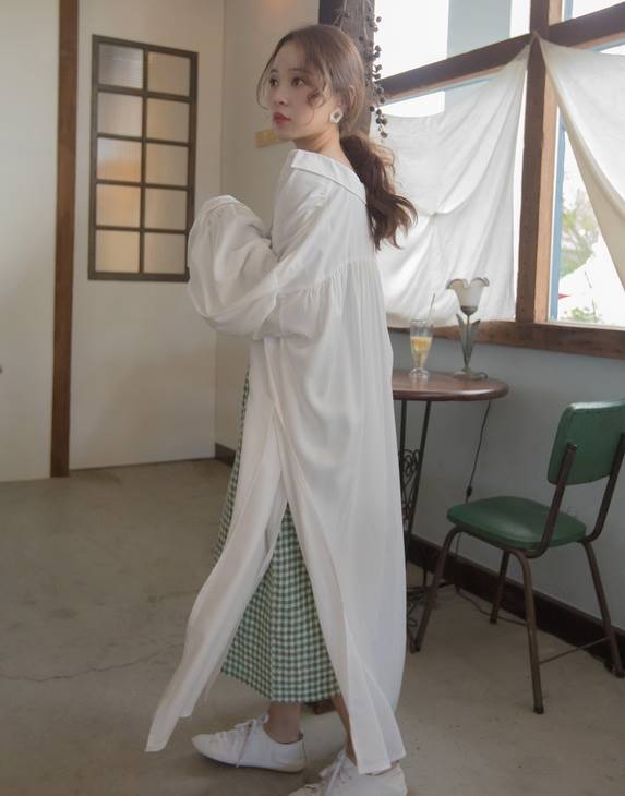長版襯衫當作外搭罩衫讓人看起來仙氣十足,喜歡這種搭法的人推薦白色款,與各種顏色都能協調存在!