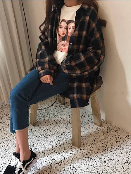 格紋襯衫雖然已經是衣櫃裡的萬年常客了,但今年的格紋襯衫趨勢多了點復古的味道,裸土色、暖棕色系會是你的好選擇,復古中帶點孩子氣的格紋讓人好感度UP!