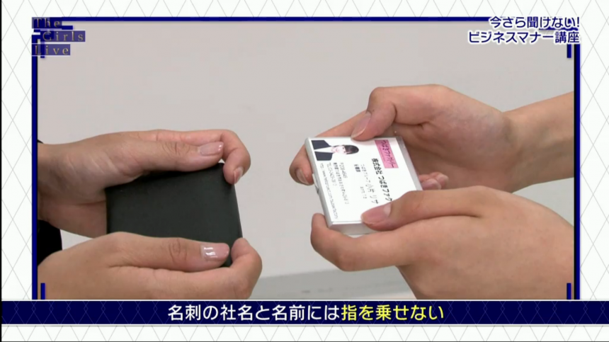 日本人於初次見面時,必定會交換商業名片。在遞上自己的名片時,不要用手指遮蓋公司名和自己的名稱。