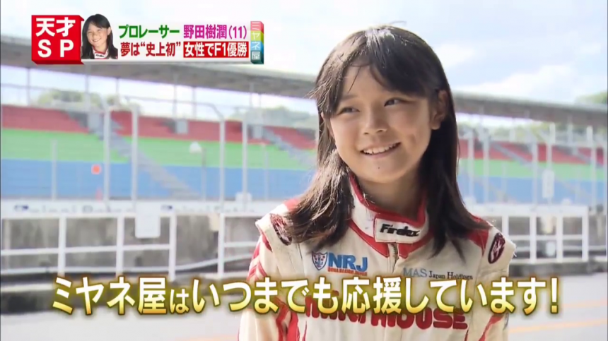 到底現實中有沒有「風見車人」般的天才賽車少年?今次介紹嘅野田樹潤(Noda Juju)就是日本超人氣的賽車界新星!Juju雖然年僅11歲,不過經已是一位「F4」四級方程式車手,也是全球最年幼、世界首位小學生成為方程式職業車手。她的父親是原F1一級方程式車手「野田英樹」,所以Juju從少就接觸賽車,結下不解緣。