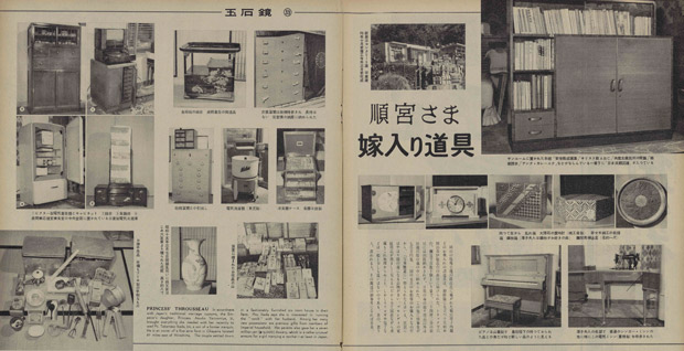 日皇的另一位姐姐順宮厚子內親王,是昭和天皇的四女。她在1952年跟池田隆政結婚,改名為池田厚子。池田隆政是舊岡山藩池田家的當主,也是原來的貴族,在岡山經營牧場。跟其姊相比,厚子公主嫁到地方去,又是另一個話題。而她在結婚時帶上的嫁妝,有各種新式電器,例如雪櫃、洗衣機、衣車等,另外還有700萬日圓。