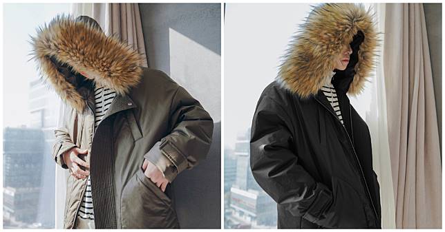 洋溢著濃濃軍裝表情的防風外套,刻意加大的尺寸讓你可以盡情發揮上寬下窄的時尚穿搭法。帽簷以獸毛裝飾,特別有種天寒地凍的北國感,十分夢幻。