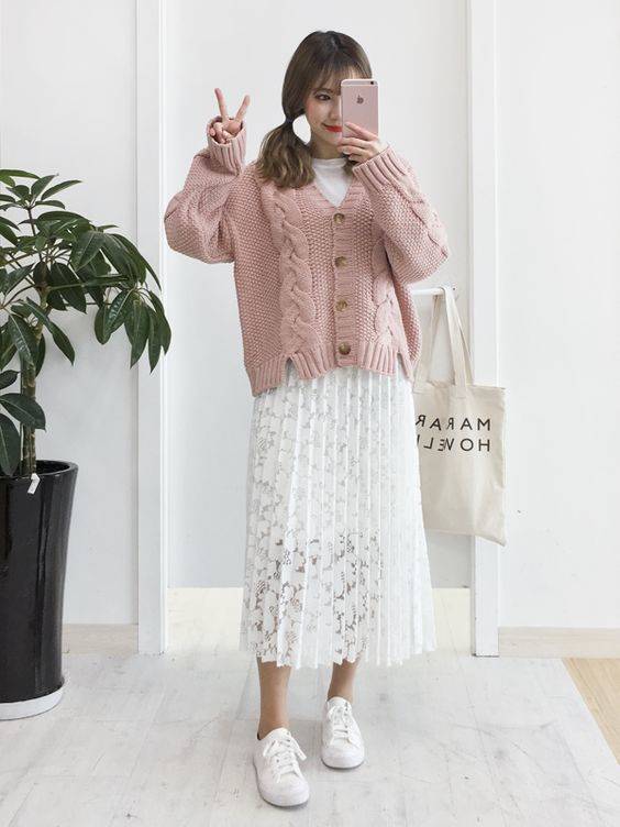 白色紗裙的仙氣程度爆燈!如果全身都穿白色的話,會令種令人不可接近的距離感,上身穿上粉紅色有助增添少女味!
