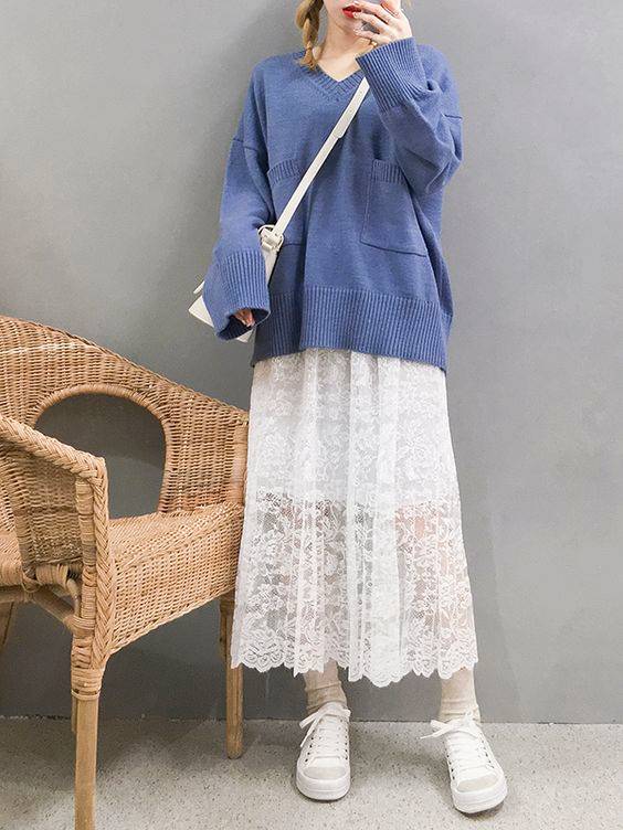 覺得淨色太單調?可以選擇有通花或者蕾絲圖案的裙子~