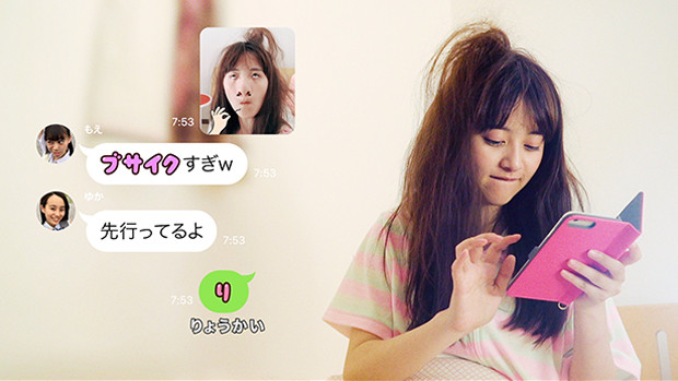 Line在官方帳號進行「常用JK語」的問卷調查,並採用最常用的38個JK語,拍了一個「JK的一天」的廣告。