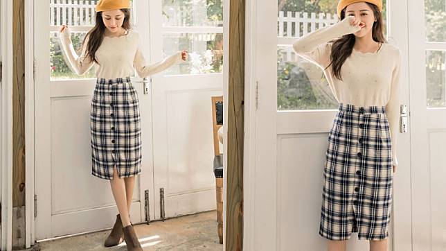 這件裙子充滿質感的格紋配色,搭配高含棉的磨毛的面料,穿起來超舒服!上半身再搭配軟綿綿的毛衣,整體軟軟的材質和溫和的顏色,最能襯托出女生溫柔的一面!裙襬的造型是開衩剪裁,也增添了幾分女人味,無論搭配靴子或是小白鞋都相當適合~