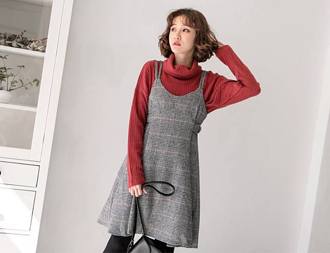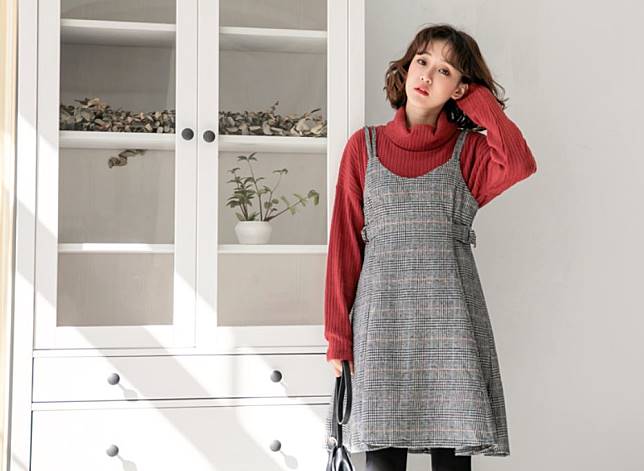 這件吊帶洋裝裡面只要搭配毛衣就超好看!腰帶的設計不只可以勾勒出腰線,雙肩帶的可愛造型,更讓穿搭可以呈現出多種混搭風格,就算搭配平底鞋也一樣好看!