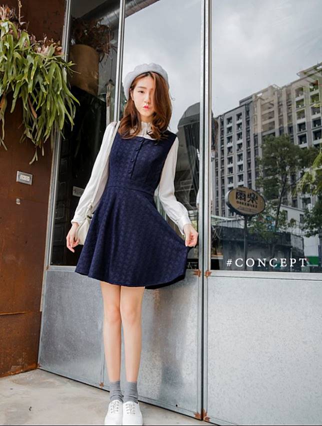 這件相當有質感的千鳥格壓紋洋裝,搭配傘襬剪裁,展現出的氣質簡直無人可敵!搭配上一頂貝蕾帽完美呈現出一種「復古美」,穿上黑絲襪更有種「性感美」呢!整套服裝讓每位女孩穿上都能成為注目焦點~