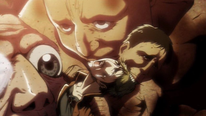 面對巨人,人類只能作出微弱反擊,大量血淋淋的食人場面,當你以為有名稱的角色,就是要角?這時候就是死亡領便當之時。霞姨~~~!