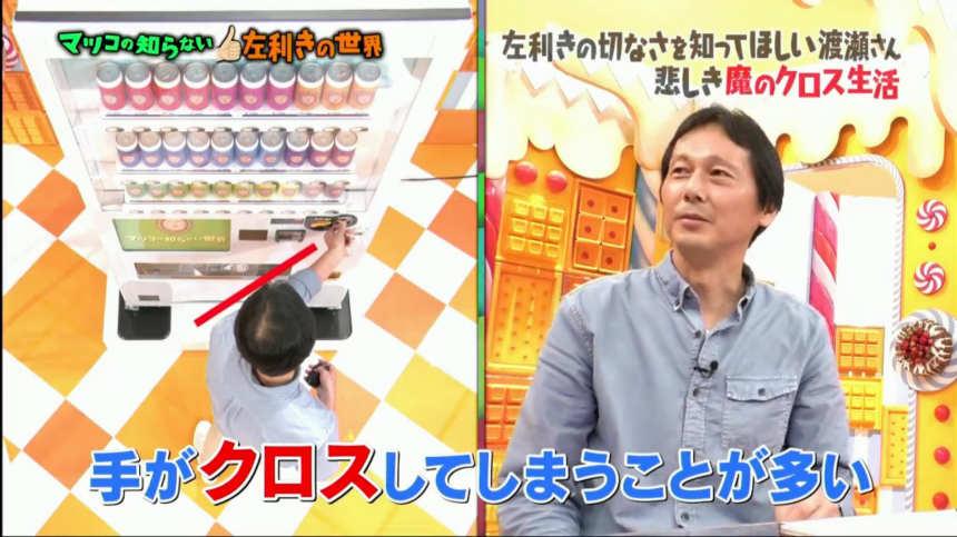 全球人口裡,約10%的人是左撇子。右撇子主導的社會,到底為他們帶來什麼不便呢?在日本隨處可見的飲品機,如果左撇子要站在正中間選擇飲品,左手就必須伸展到右邊投幣。相同原理的設施還有火車站閘機、雪櫃、升降機、飛機餐盤等等。渡瀬還強調江戶前壽司的排列方式也對左撇子造成不便。他指,一個生活不便平均浪費三分鐘,左撇子的一生浪費了很多無謂的時間在這個不公平的社會上。