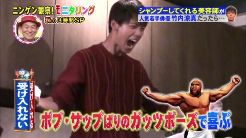 在洗髮的途中,涼真會問「平時有看電視嗎?最近喜歡那個男星?」由於第三位觀察對象真的很喜歡涼真,所以一來就說「會看電視劇,最喜歡竹內涼真」搞到涼真超興奮,還要偷偷擺出勝利姿勢(笑)