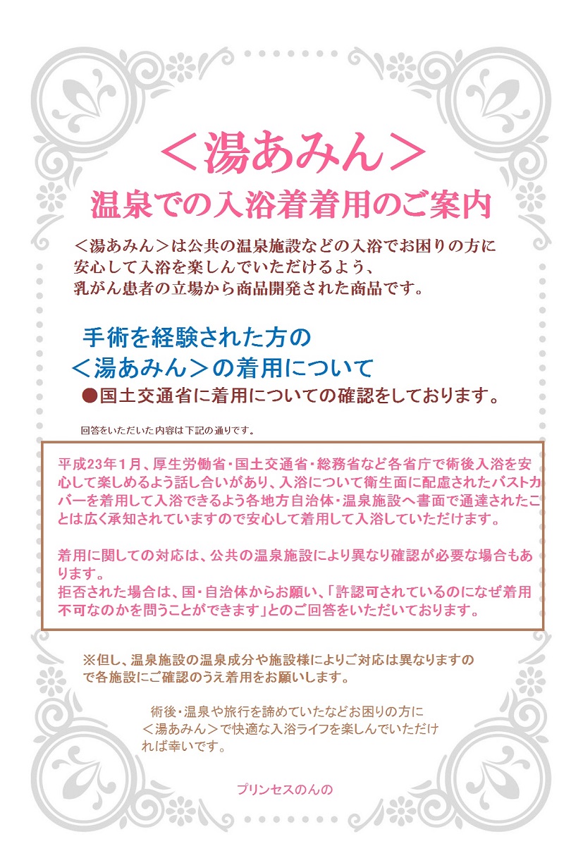 ▼ 岩手縣的一關溫泉旅館製作海報,推薦曾接受乳癌手術的女性穿著「湯あみ着」