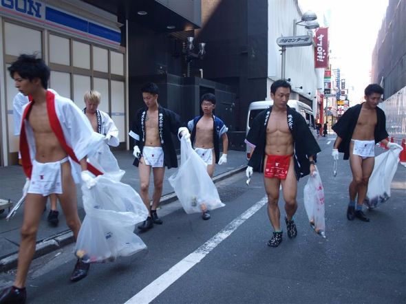 在澀谷街頭上,一班只有穿著兜襠布的男性,拿著長夾和膠袋義務執垃圾。到底他們是誰,為何只穿一條兜襠布?