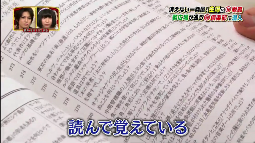 然後,歌広場淳也有新興趣「問答比賽」。曾參與各大電視台的問答比賽的他,比大家想像中更熱愛這一項賽事。歌広場每個月都會參與問答比賽俱樂部的練習,與日本問答比賽協會前理事、問答比賽問題作家等實力派人士比賽。在節目中的片段,只要聽到問題的頭七個字,歌広場就已經能夠回答問題,實力相當強勁。而且,為了提高實力,他還會背誦過往的問題集。