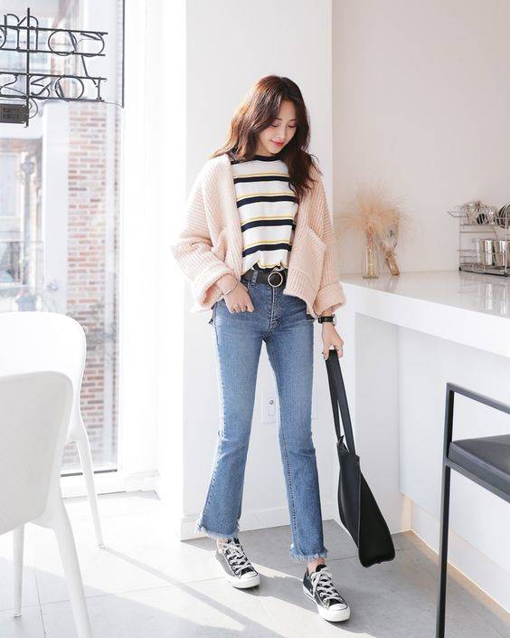 矮女生就不能穿牛仔褲嗎?當然不是!高腰長褲就是矮女生的福星!褲頭都拉高到腰部位置,在視覺上讓腿變得又長又幼,別人從遠處看上去都以為你是擁有一雙長腿的170cm女生啊!