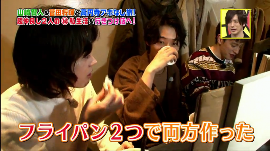 ▼ 山崎跟菅田都說自己不會下廚,但菅田自爆山崎常常在他家留宿,通常他都會煮咖哩給山崎吃。而山崎有時會耍任性,要求一次過吃甜味和辣味咖哩。菅田超寵他,真的會用兩個鍋分開煮兩種口味。