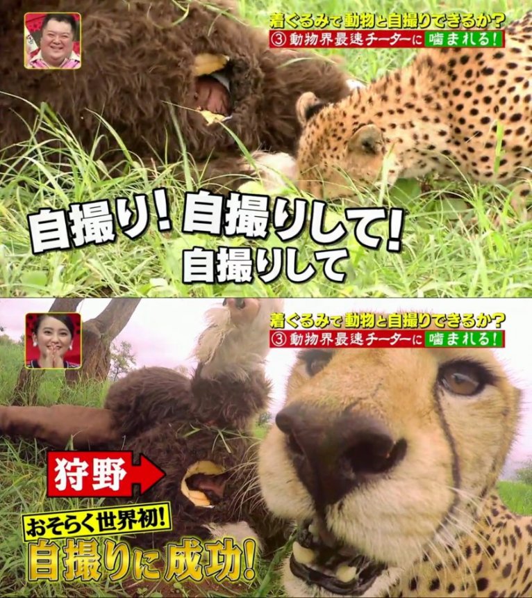 接近完長頸鹿之後,狩野扮成鴕鳥,想去找真鴕鳥拍照。但是走路方式太奇怪,被真鴕鳥看穿,牠們還高速逃走。停留在原地的鴕鳥狩野遇上獵豹,被牠抓住屁股咬。當他慌張逃跑的時候,不小心倒在地上,獵豹還嘗試咬狩野的頭部。即使狩野不斷向工作人員求救,他們只跟他說「是自拍的好機會!」