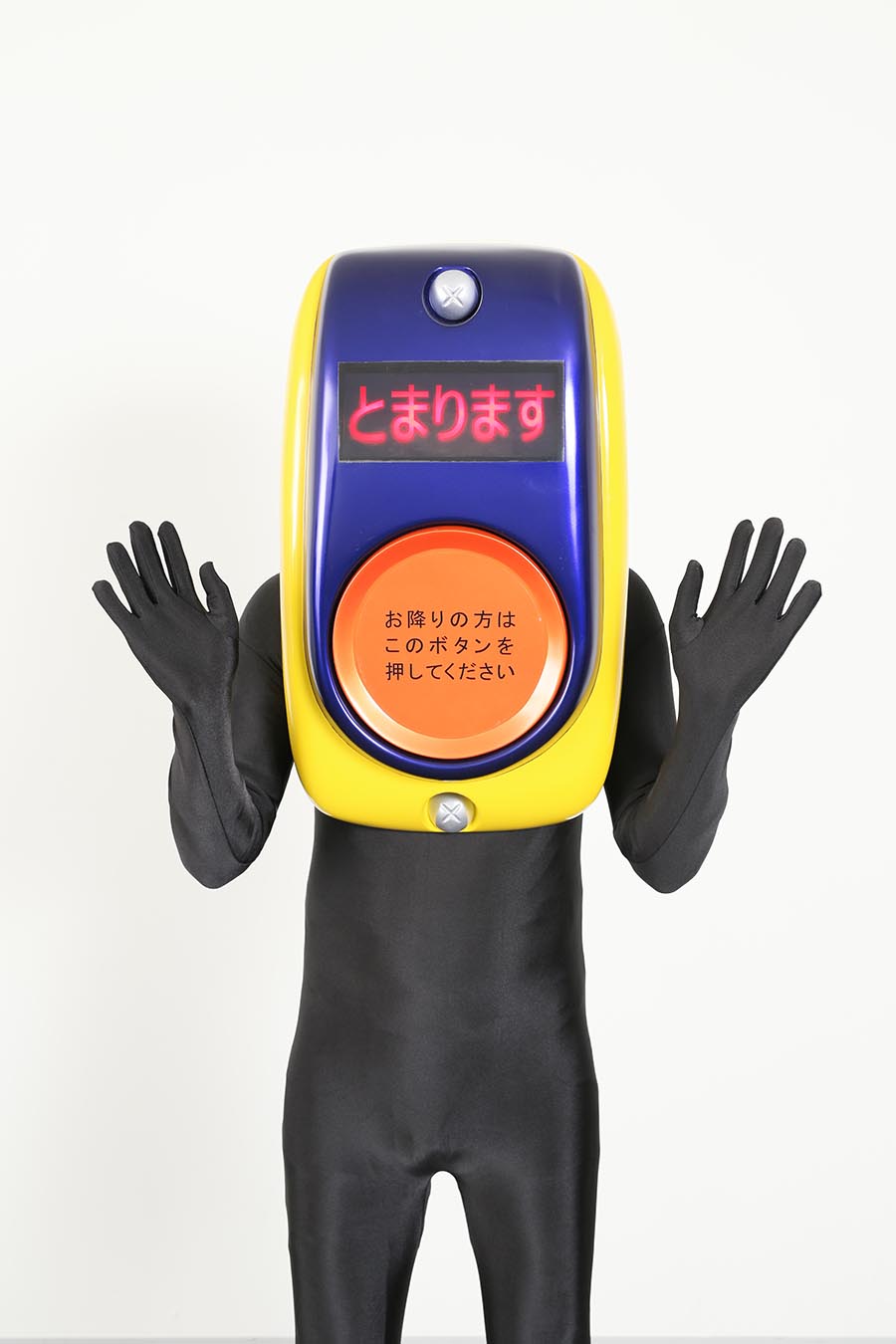 下車鈴先生的打扮有點像電影小偷和警燈男,頭部都被物件取代了,只不過他穿的是黑色緊身衣。雖然作為吉祥物是有點怪異,但那個巨大的下車鈴很吸引,讓人很想大力按下去。而且,主題曲《とまりますボタンさんのうた》也很不錯,如果在搭巴士時看到下車鈴先生,一定會心跳加速吧~