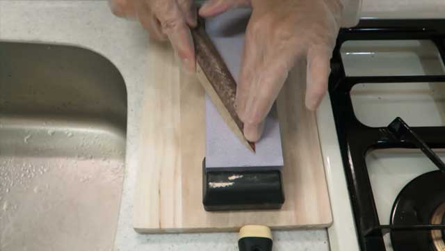 當鰹魚乾刀開始成形的時候,放進焗爐裡烤乾,最後用研石調整刀的形狀。這個花了數小時製作的刀,真的很漂亮!大概這是世上最美味的刀吧(笑)