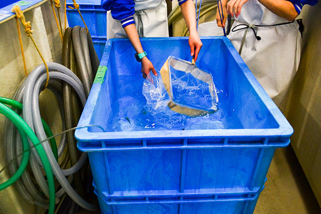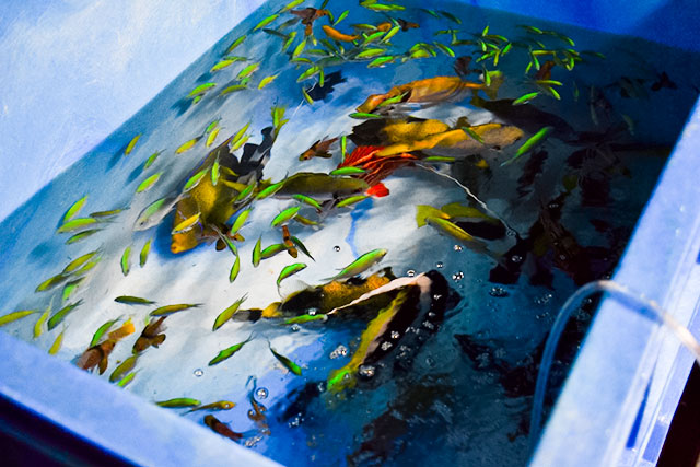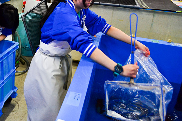 記錄了魚的種類和數量後,再轉送到臨時水缸。