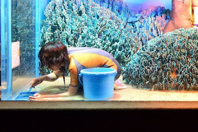 清潔工作完結後,職員會注入新的海水,讓水缸放置一晚,第二天才會將海洋生物從臨時水缸帶過來,回復原狀。
