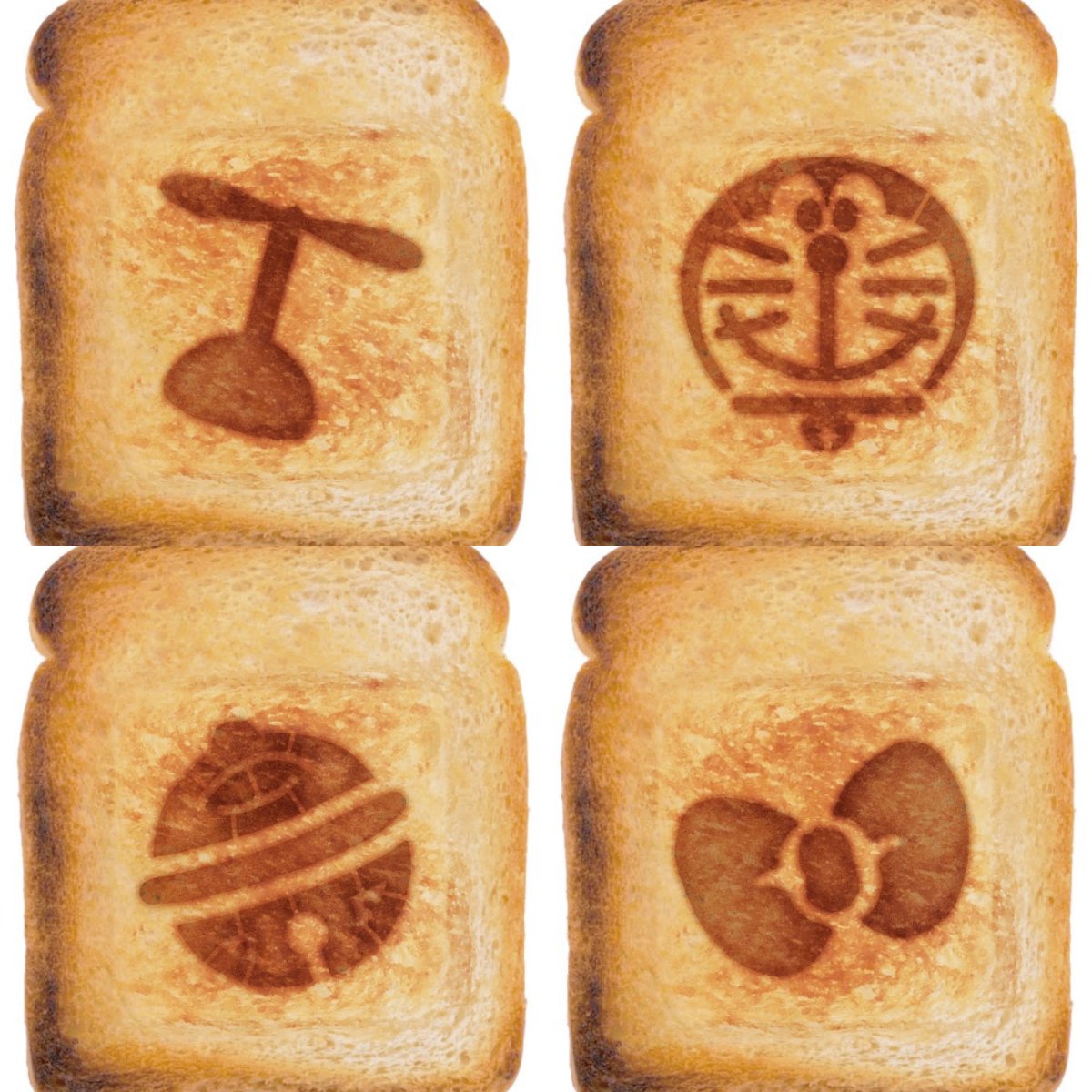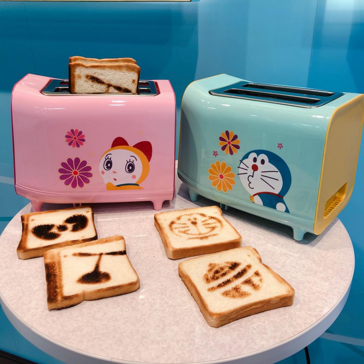 兩台機器各能烤出不同圖案的吐司,分別代表性圖案如領結、鈴鐺、竹蜻蜓、哆啦A夢的圖案,真的是超級勾追。