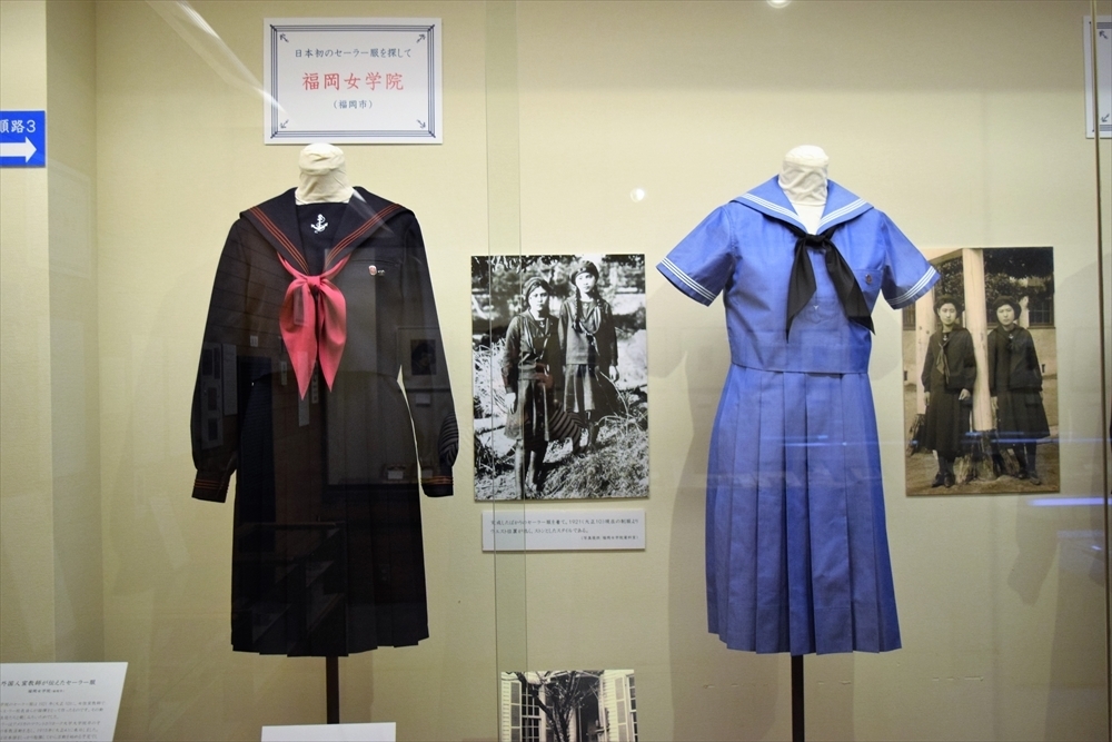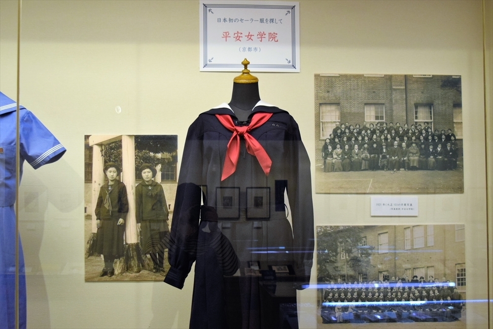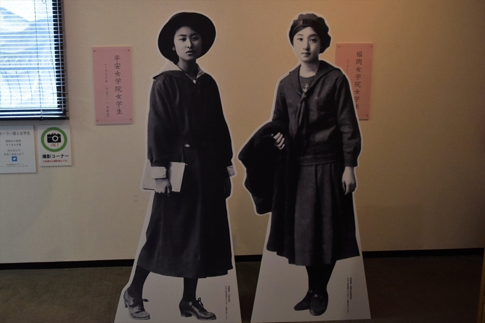 會場也展示了日本最初被採用為校服的水手服,是來自京都的平安女學院。參觀者還可以跟100年前的女學生的立牌合照。