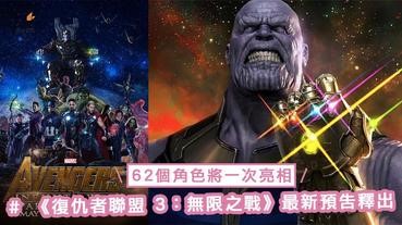 - 《復仇者聯盟 3:無限之戰》最新預告釋出!將有英雄要在本集戰死?62 個角色將一次亮相~