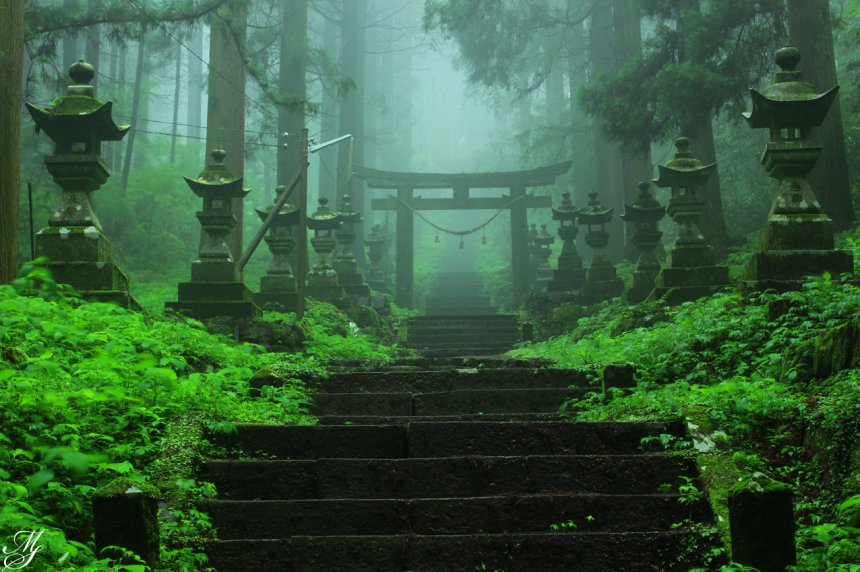 上色見熊野座神社是熊本縣阿蘇郡高森町的注名能量景點之一。在長長的參道兩旁,有著近100座石燈佇立。而且,在深山之中較少接受陽光照射的機會,四周都長滿青苔。如此神秘的氛圍讓網民稱該神社為「神秘的異世界入口」。