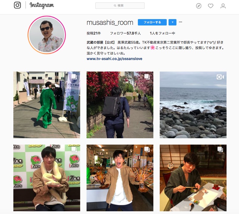 通常日劇都會以Twitter、Instagram作宣傳,以幕後花絮製造話題和吸引更多觀眾收看。沒想到《大叔的愛》竟然有隱藏版IG「武蔵の部屋」(武藏的房間)。這是由黑澤部長經營,專門放置はるたん(春田田)偷拍照的帳號。