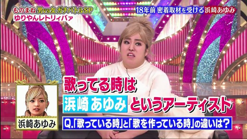 https://www.instagram.com/p/BjGtBfCjIlF/向來模仿藝人都不易做,很多時只會飽受本尊粉絲的責罵。近日,又有女諧星因為模仿名人而惹怒粉絲。去年開始爆紅的諧星Yuriyan Retriever在綜藝節目《ものまねグランプリ 男芸人VS女芸人怒涛のガチバトルSP》上,模仿18年前接受貼身追訪的浜崎步。
