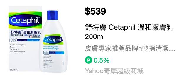 編輯推薦: 「Cetaphil」溫和潔膚乳200ml /NT$750
